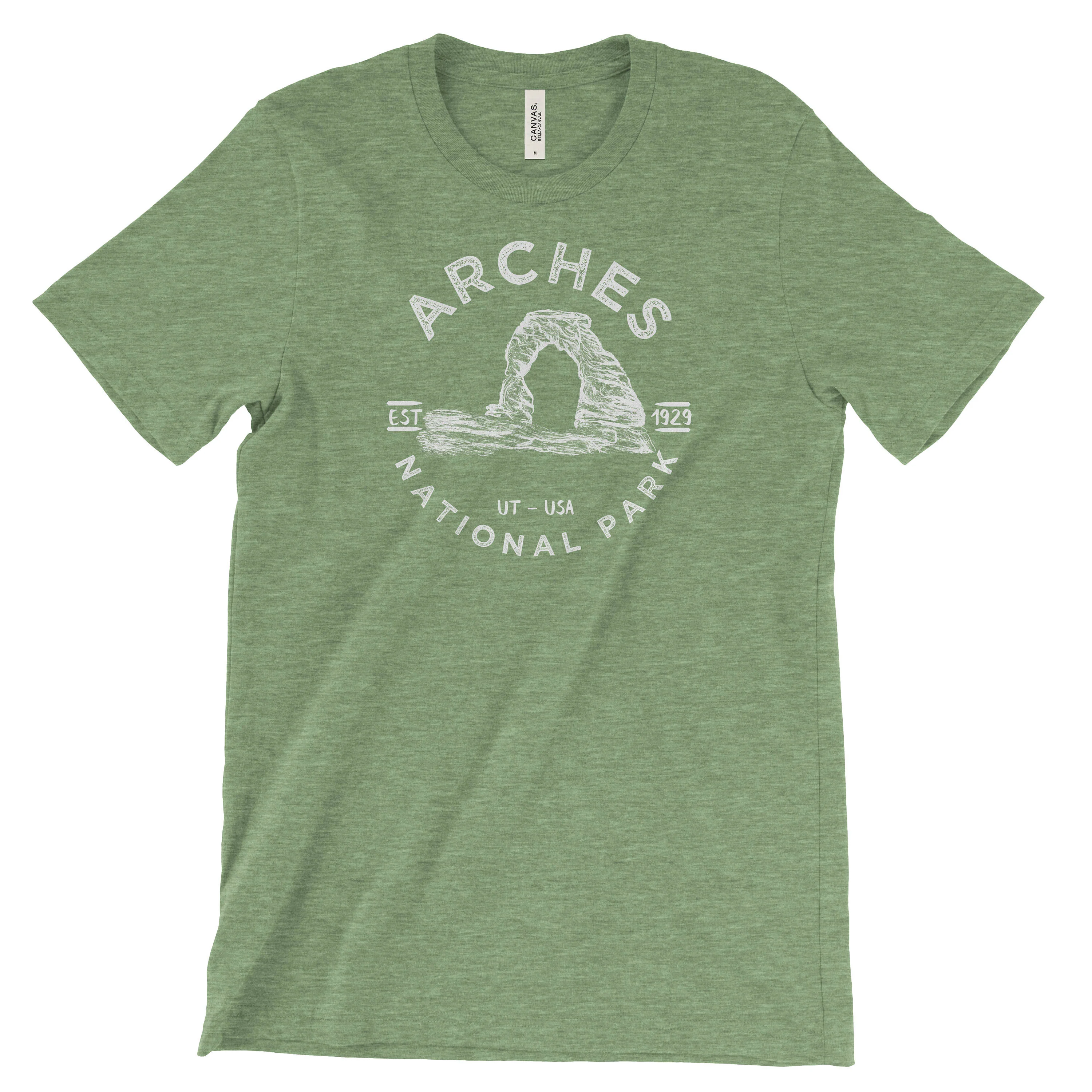 The Arches National Park Adventure T shirt is printed with white environmentally friendly water based ink on a Unisex Bella Canvas t-shirt. Design features the Massive Sandstone Iconic Delicate Arch. Bella+Canvas super soft cotton t-shirt is made with premium quality knit cotton jersey. A modern unisex fitted shirt, this style features a crewneck and contoured side seams for a stylish trendy t-shirt.